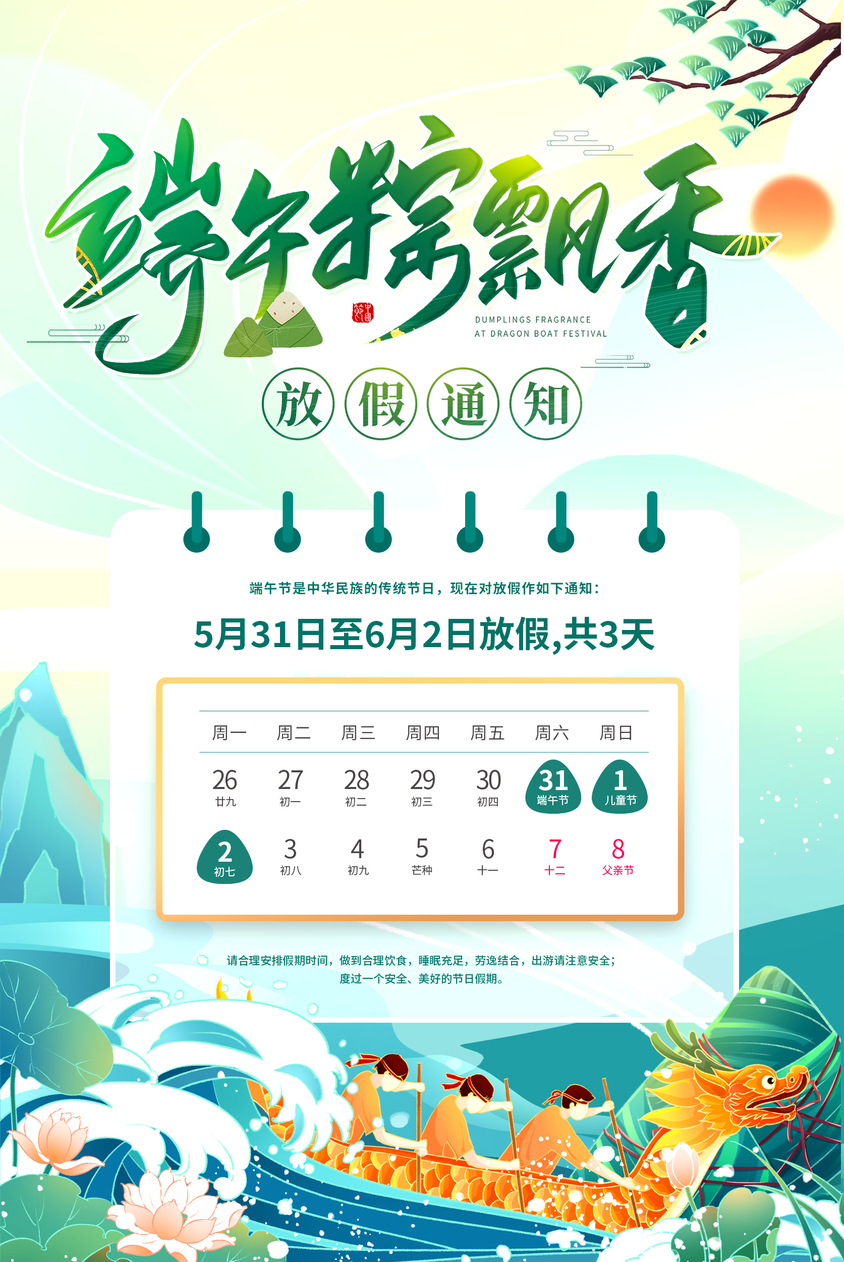 根據(jù)《國(guó)務(wù)院辦公廳關(guān)于2025年部分節(jié)假日安排的通知》,并結(jié)合我司實(shí)際情況,現(xiàn)將2025年端午放假安排通知如下: