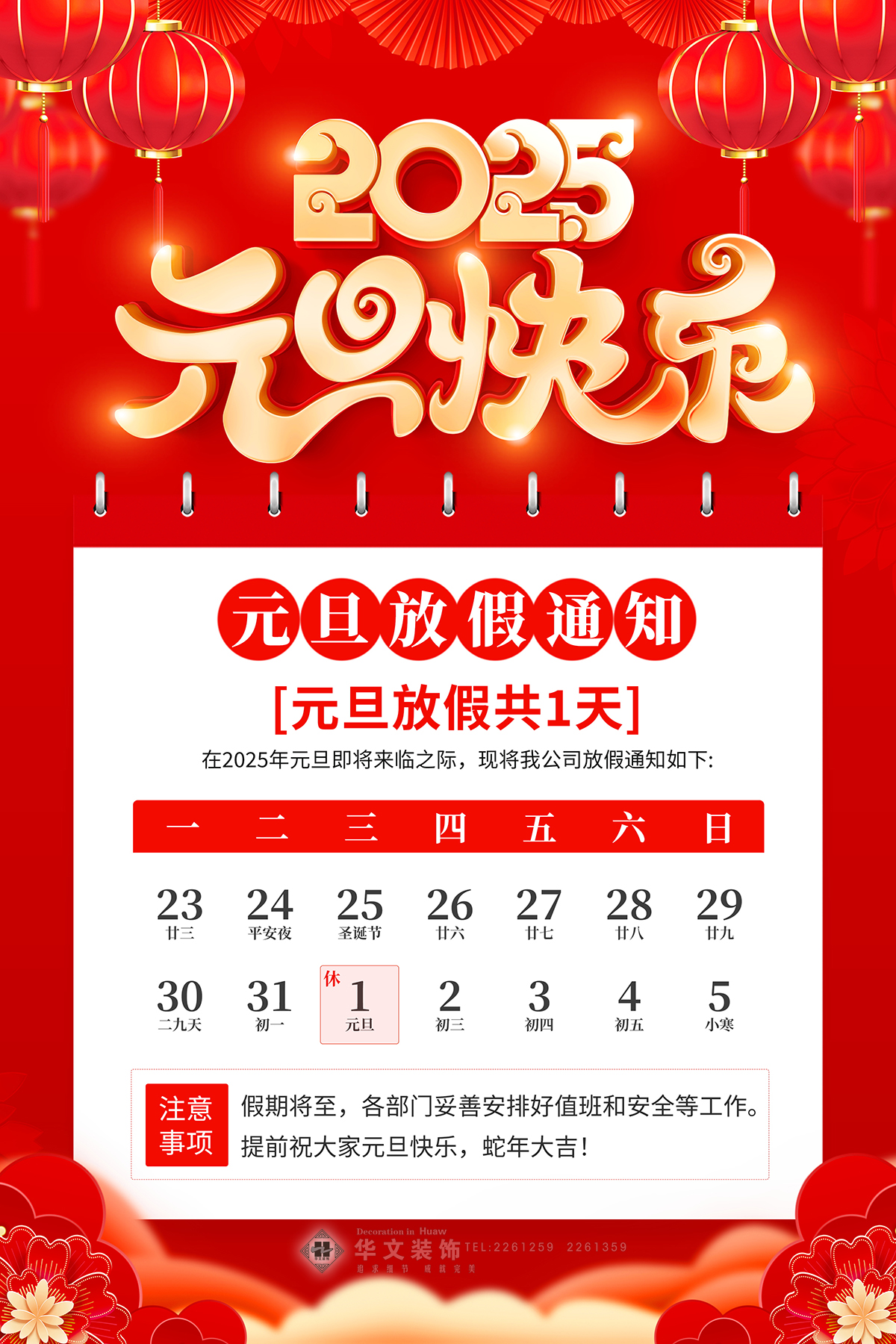 NEWS & INFORMATION華文裝飾 2025年元旦放假通知